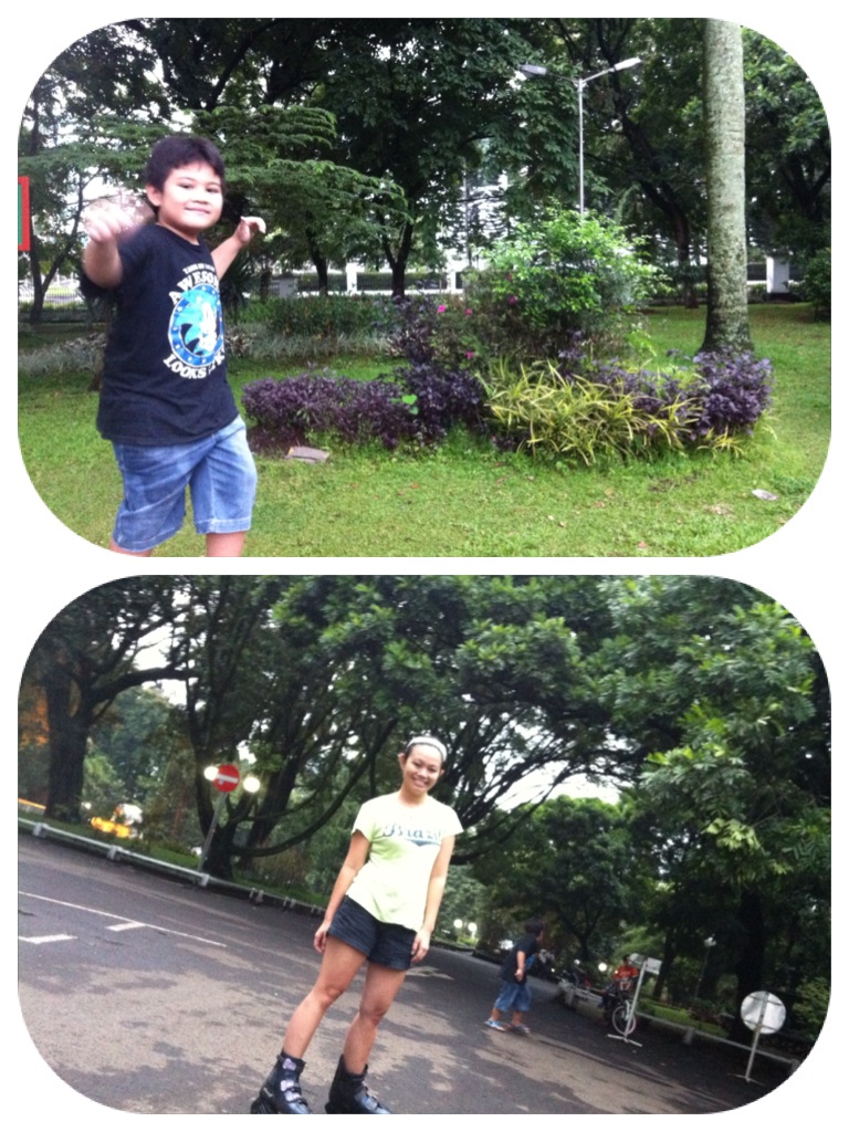 ahaha, main roller blade memang bringing the childhood back! seru banget, bakar kalorinya lumayan juga nih 🙂