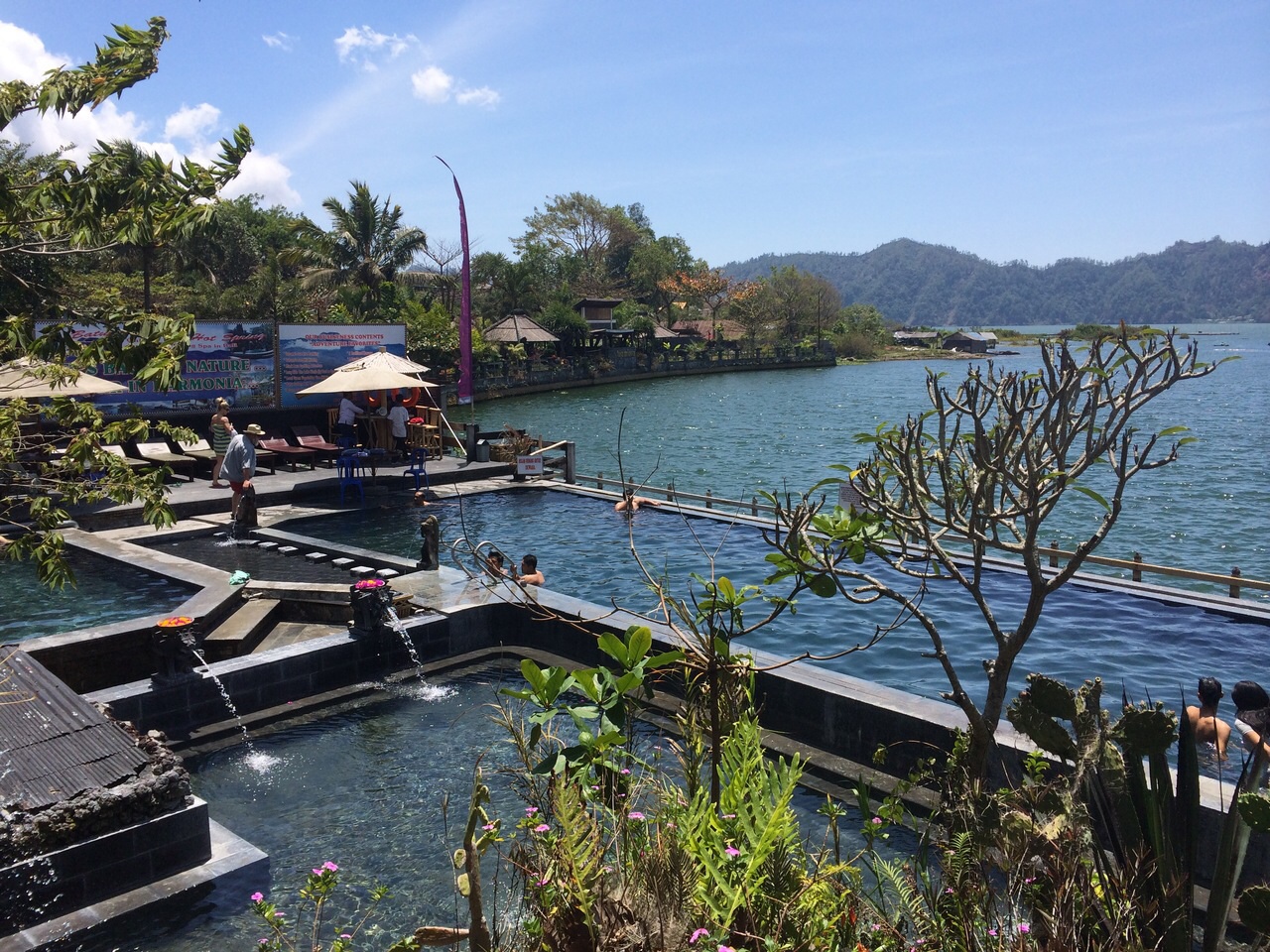 Berendemnya tentu saja bukan di Danau Baturnya ya kan. Tapi persis di sisi Danau Baturnya ada kolam air panas natural yang bisa dipake berendem. Nyetir kesini lumayan PR karena dari Ubud aja satu jam setengah. Tapi di kiri kanan pemandangannya cakep-cakep dan banyak tempat makan pun, kalo laper ya berenti makan aja.