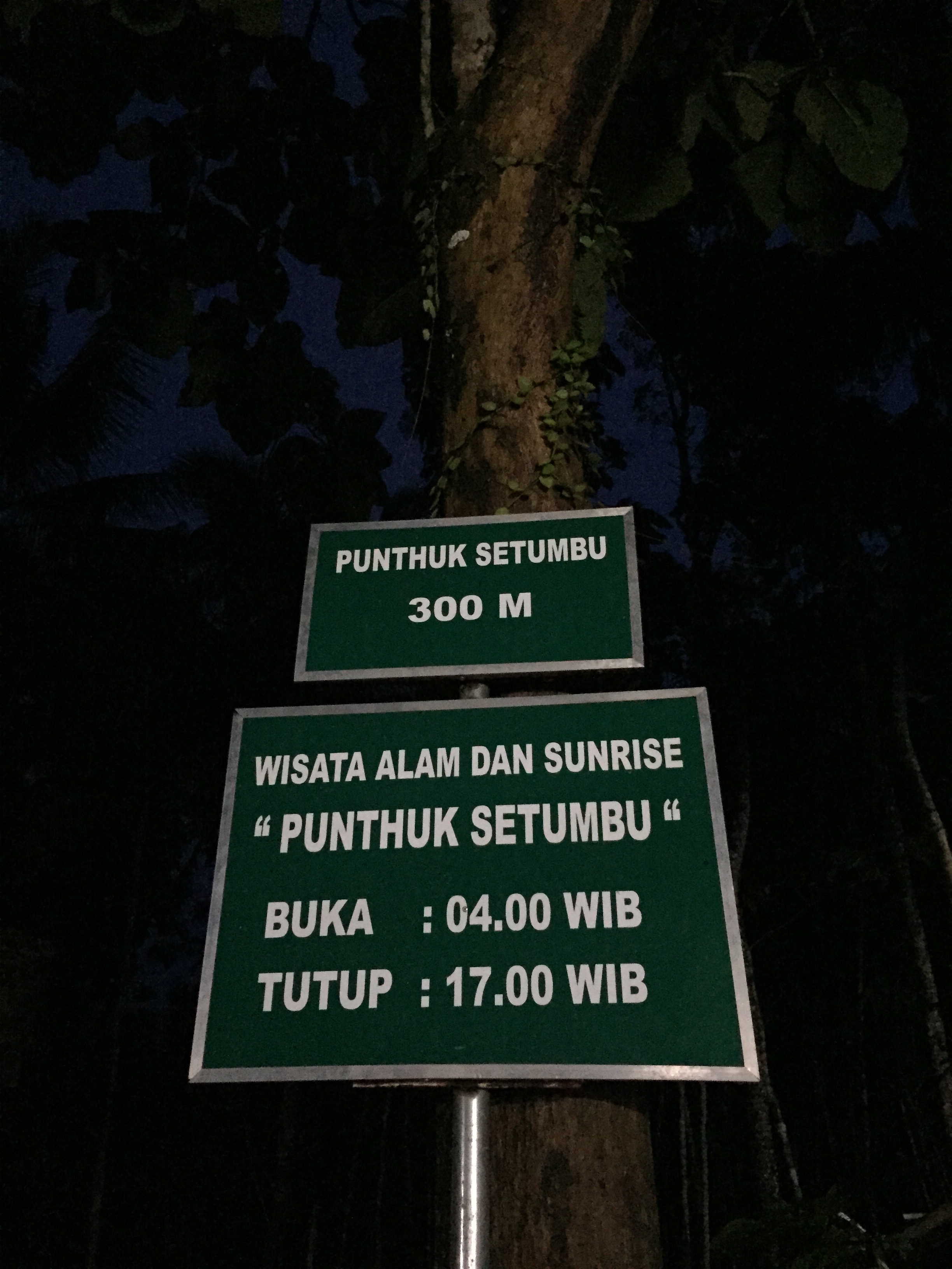 Makanya waktu menginap di sekitaran Borobudur kemarin, saya berencana mau liat yang namanya Puthuk Setumbu ini. Posisinya ada di barat daya Borobudur katanya. Apakah nyarinya gampang? Ga susah sih, ada beberapa petunjuk arah. Yang bikin susah adalah nyarinya kan masih gelap sekitar jam 4 pagi dan kita dikejar waktu sebelum matahari terbit. Hotel waktu itu nggak menyediakan informasi yang cukup jelas, cuma bilang, naik ke bukit belakang Borobudur. Akhirnya saya mengarahkan mobil ke depan Borobudur, dan setelah 3 detik bengong, ada bapak-bapak pake motor menawarkan menunjukkan jalan ke Puthuk Setumbu dengan syarat “gantiin uang bensin aja Mbak”.