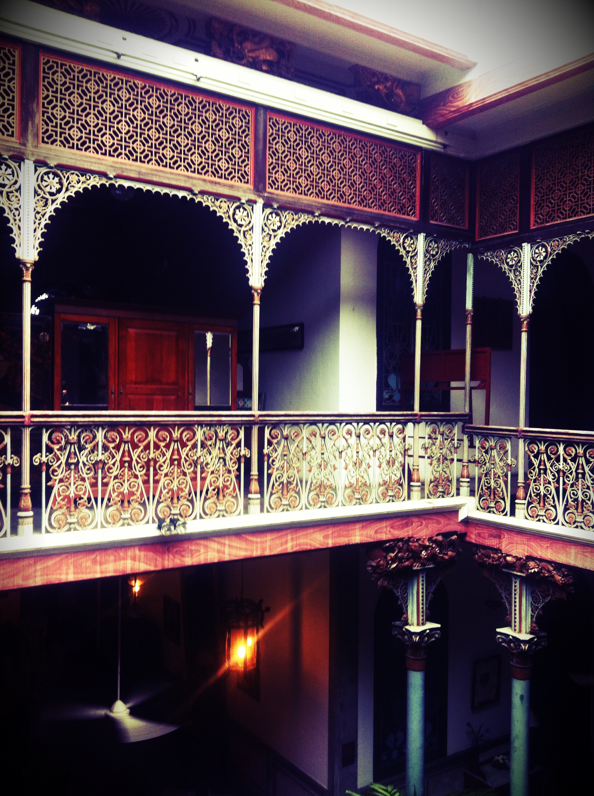 Dari situ, sambil hujan hujanan naik sepeda saya dan Biyan pergi ke Cheong Fat Tze Mansion, lagi-lagi karena sarannya @qnoy2k, sampe sana entah kenapa, harga tiket yang 12RM itu didiskon menjadi cuma 9RM buat saya dan Biyan. Mungkin yang jaga tiket kesian sama muka kita berdua yang sudahlah basah kena ujan, ketambahan Biyan pake plastik kresek di kepalanya. Dengan ketambahan semangat mau neduh dari hujan, masuklah saya ke mansion itu dan beberapa di dalam, si Biyan langsung cemberut secara tour kelilingnya lumayan lama, sejam lebih dan tentu saja bukan konsumsi anak kecil. Mansionnya sendiri menarik banget kok, beneran bagus dalamnya. Dan mereka punya guest house yang cocok buat kamu yang pengen ngerasain tinggal disitu. Saya sih males ya, horror kali kalo malem malem ngga? Tapi asik juga sih kayaknya, bisa ngerasain breakfast di tempat yang persis dengan si konglomerat Cheong Fat Tze dulu sarapan, kali kali aja tajirnya nular. Yakali.