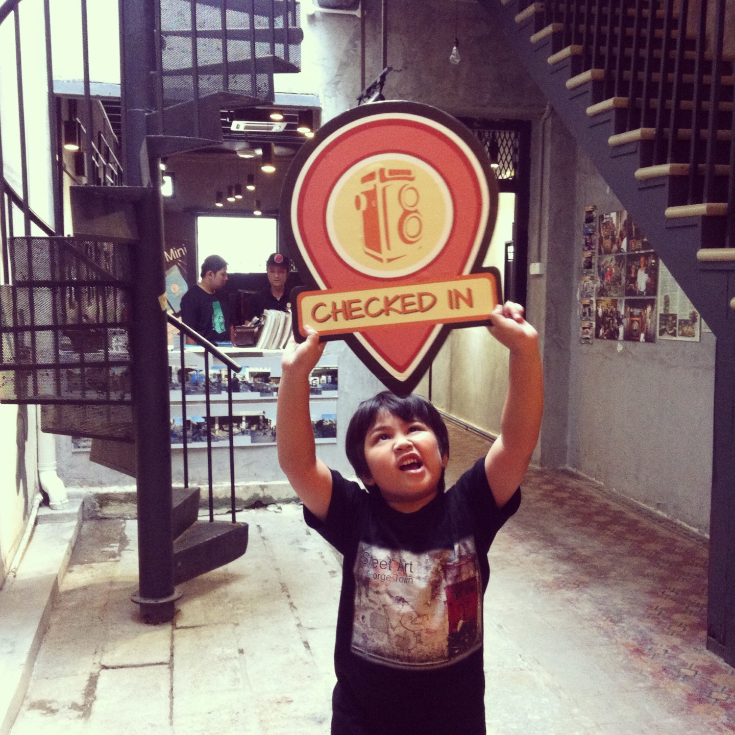 Keesokan harinya saya balik lagi ke tempat penyewaan sepeda. Rencananya hari itu saya mau keliling-keliling Georgetown, sambil mencari mural atau lukisan di dinding yang beken dimana-mana itu. Dari berpuluh-puluh murals yang ada, saya nemu beberapa belas. Seru juga karena perjalanan keliling naik sepeda kita diwarnai dengan hujan rintik-rintik. Sambil nunggu hujan, saya dan Biyan mampir ke Camera Museum. Di dalem situ ada koleksi kamera dari taun 1800an. Yah ga terlalu menarik sih buat saya yang bukan penggemar fotografi (hobi difoto kan bukan berarti doyan fotografi ya). Di sebelah Museum Camera taunya ada satu coffee shop kecil namanya Moon Tree. Camera Museum dan Moon Tree sama sama ada di Jalan Lebuh Muntri. Gampang diinget karena rhyming. *alah*